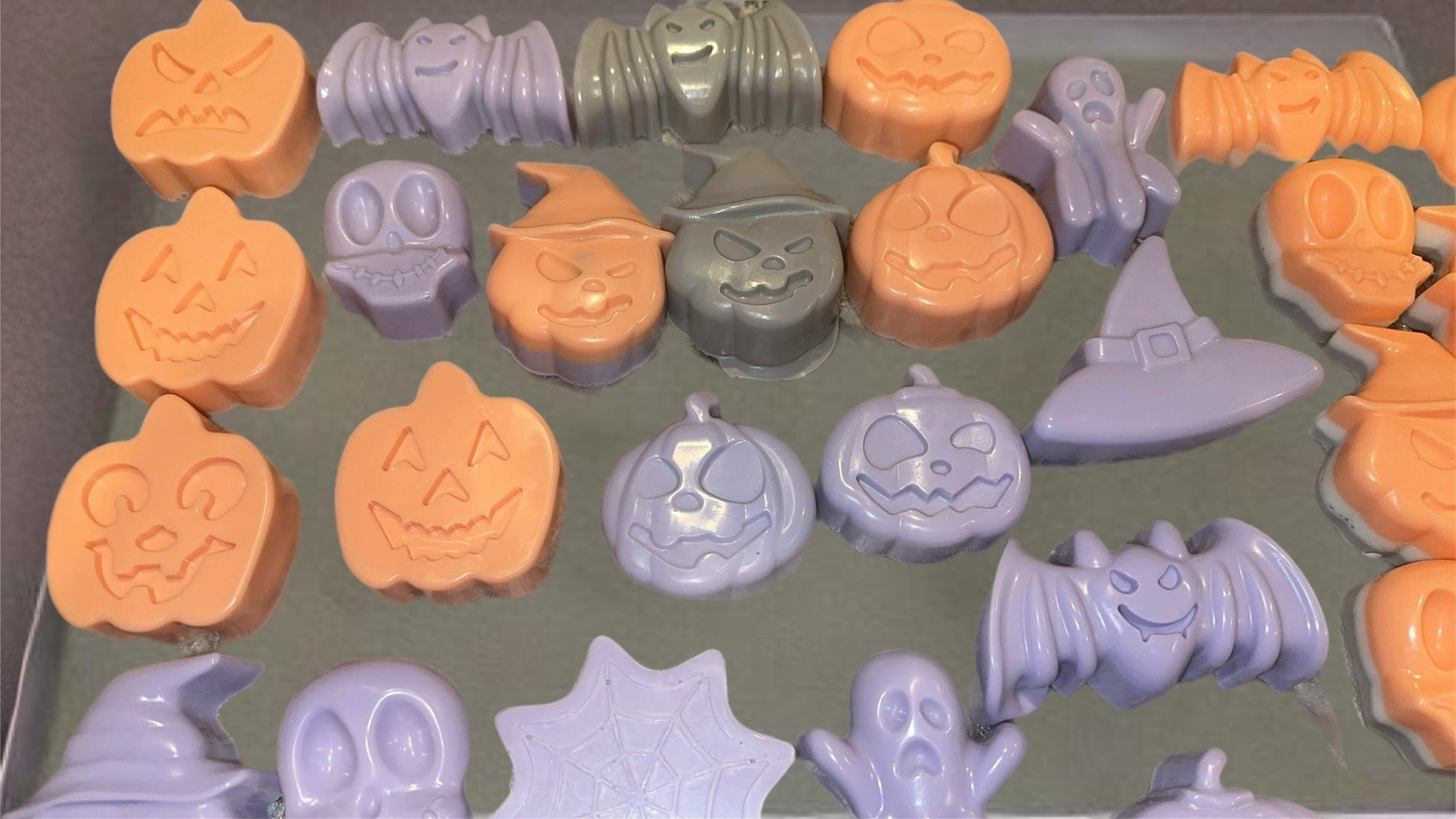 Made with Primal Elements Goat Milk Melt & Pour Base for a creamy, moisturizing wash, and clear glycerin soap base for glow-in-the-dark and extra fun shapes!